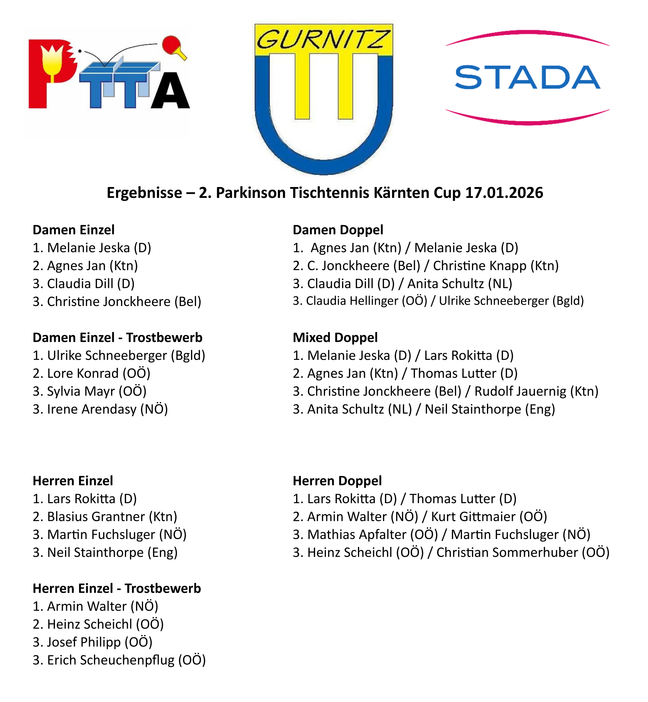 Am 17. Jänner 2026 fand in Ebenthal bzw. Gurnitz der 2. Kärnten Cup mit 30 StarterInnen aus Österreich, Deutschland, sowie je einer Dame aus Belgien und Holland, statt.