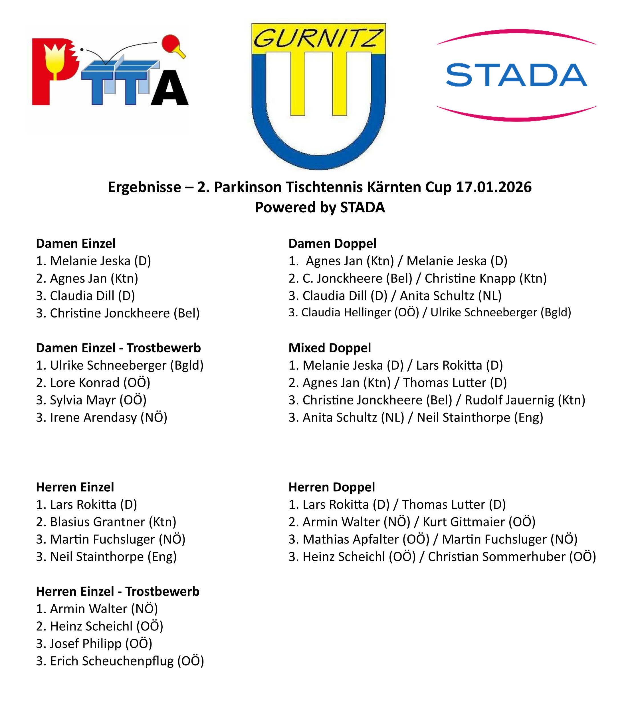 Nach dem erfolgreichen ersten Kärnten Cup 2025 wurde das Starterfeld verdoppelt, und Dietmar Jan und der TTC Felsberger Gurnitz organisierten wieder ein tolles Turnier, mit einem Rundum-Wohlfühl-Paket und vielen Goodies für die Teilnehmer! Ebenthals Bürgermeister, Christian Orasch, ließ es sich nicht nehmen, viele der Matches live zu beobachten, und dann die Siegerehrung vorzunehmen.